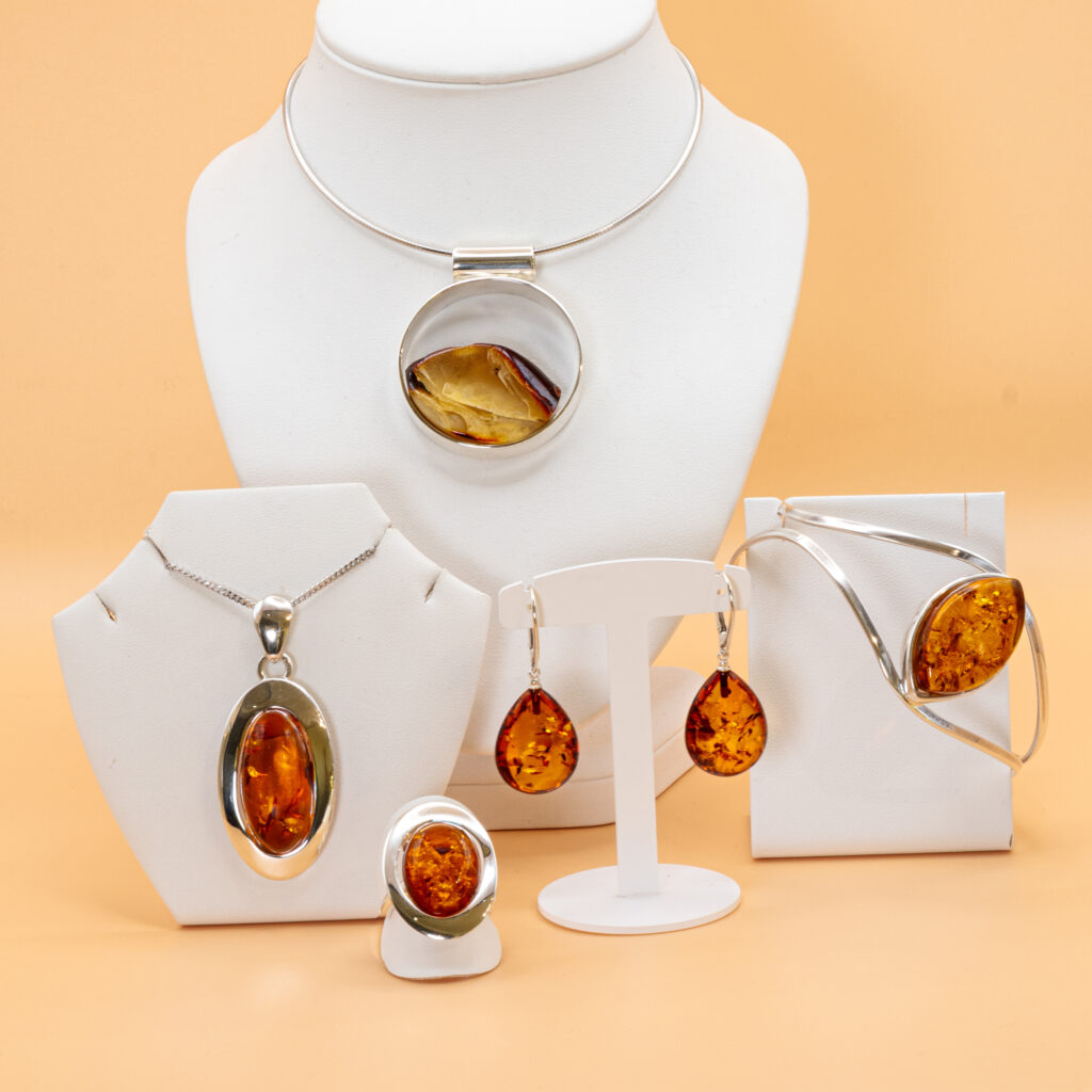 Schmuckstücke aus Perlen, Edelsteinen und Silber.