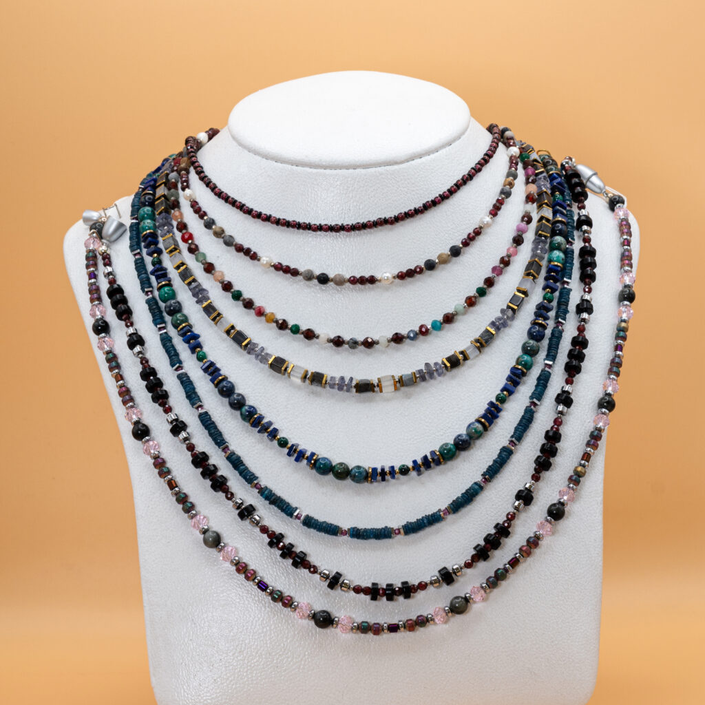 Ein kleines Sortiment an selbst designtem und – gefertigten Perlen – und Edelsteinketten!